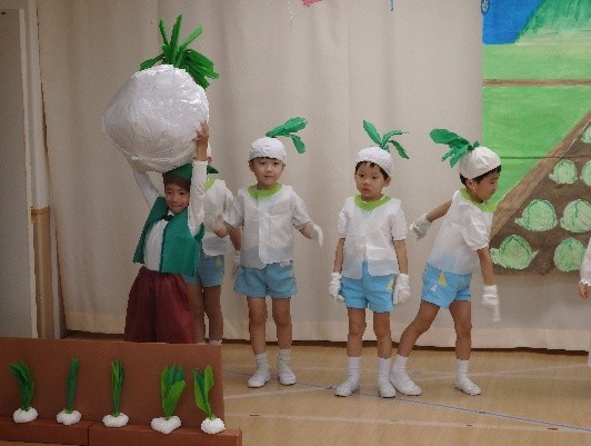 また、9月26日~27日には光組・虹組・花組・星組・月組(1歳児・2歳児・3歳児・4歳児・5歳児クラス)にておゆうぎ会を行いました。毎年12月に実施していましたが、今年度は時季をずらしての開催となりました。おゆうぎ会の練習や本番を見ている中で、子ども達のパワーを感じたり、成長を感じることができ、次のステップにつないでいけるように、これからも保育していきたいと思います。