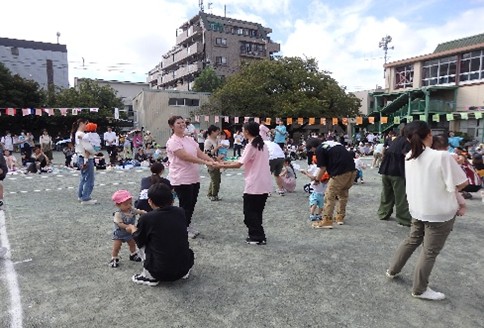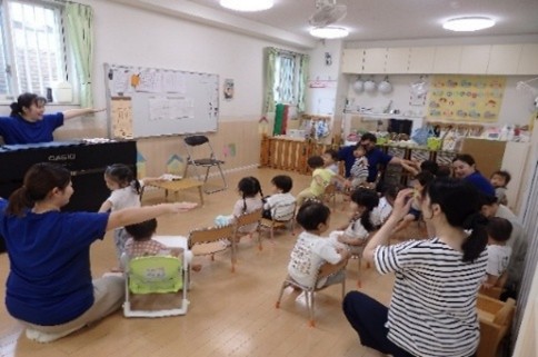 保育園の0歳児・1歳児クラスの子ども達と一緒に、親子ダンスに参加して