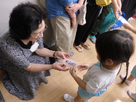 保育園では9月4日に、敬老の日にちなんで花組・星組・月組(3歳児・4歳児・5歳児クラス)のおじいちゃま、おばあちゃまを園にお迎えし、敬老参観を行いました。かわいいお孫さんの姿をやさしいお顔で見守られていたのがとても印象的でした。参観の最後には子ども達が作ったしおりをプレゼントしました。