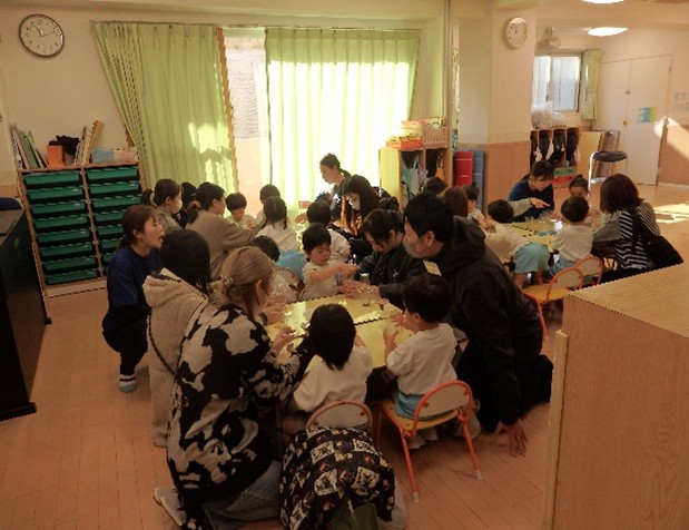 日頃の様子や活動の中で作ったものを見ていただき、保護者の皆様と制作活動やお正月遊びをしたりと和やかな雰囲気の中で、一緒に楽しむ姿が見られました。